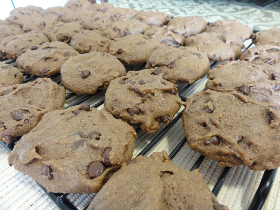 A can of pumpkin puree sitting in my cupboard, looking for a purpose, led me to another wonderful recipe from Maria and Josh at Two Peas and Their Pod.  I was inspired by their Healthy Pumpkin Chocolate Chip Cookies to try out my theory on cocoa powder and the result was marvelous.  These cookies even won over a friend of mine who normally wouldn’t go near pumpkin!
