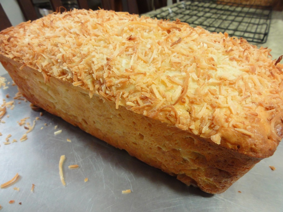 This delightful recipe comes from Melissa at Melissa’s Southern Style Kitchen.  I went searching for it after I had a request to make something that involved coconut and pineapple.  Cookies are typically the first thing that come to mind for me, but I wasn’t sure how to handle both of those flavors in a cookie so I decided to branch out and try a loaf recipe instead.  Melissa’s recipe looked great and the idea of a light and sweet bread definitely appealed so I gave it a try and am very glad I did!