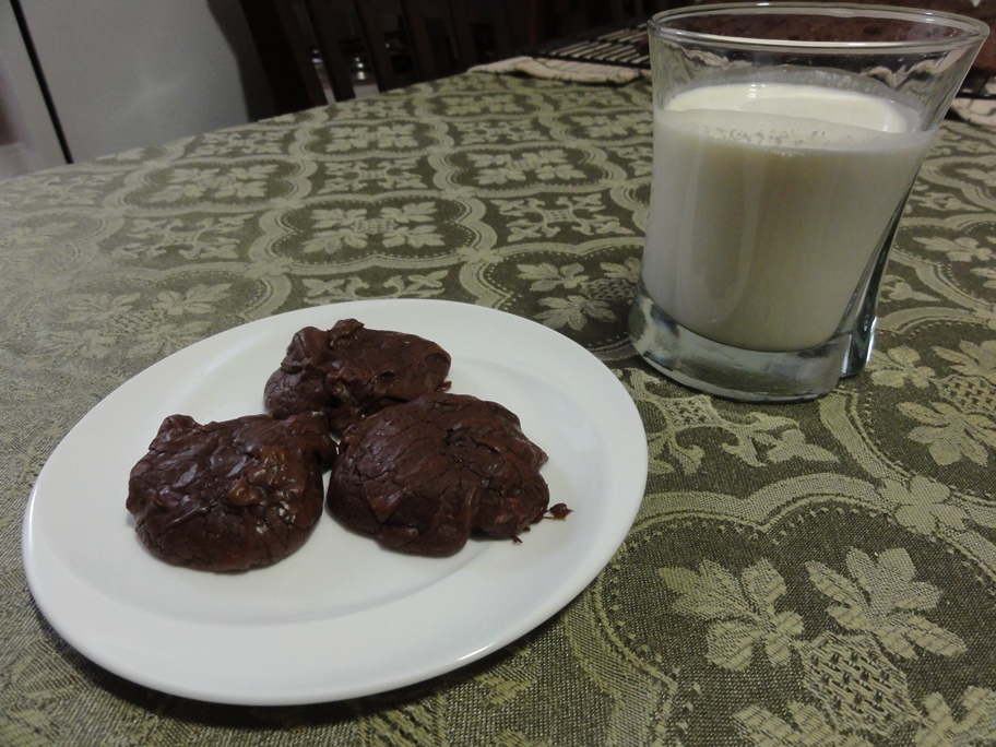 Simply put, the name for these cookies is perfect. The proportion of chocolate far exceeds any other ingredient, the consistency is that of a brownie, and the form is that of a cookie. Also, they taste fantastic, being a little on the rich side on account of all that lovely chocolate.