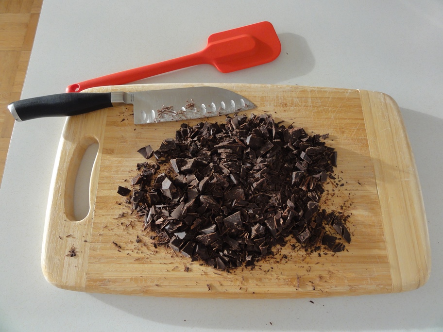 I can’t say it enough: be patient when melting chocolate! A very low temperature setting on your stove is best, and stir often. A spatula is a good choice so that you can clean the sides and bottom of the pan while stiring and ensure a smooth combining of the chocolate as its melting.