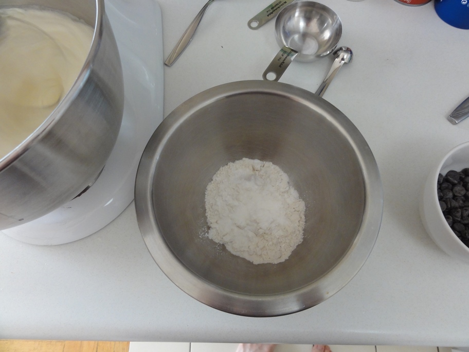 In the interest of ensuring a more consistent blending it doesn’t hurt to mix the flour, salt, and baking powder together with a whisk in a small bowl before you toss it into the batter. This is also something you can do while the stand mixer is crazily whisking away for 10 minutes.