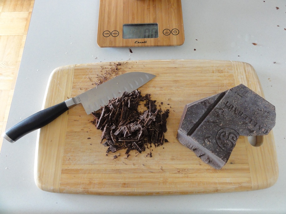 The reason for the long preparation time with this recipe is the time it takes to chop up the hazelnuts and the chocolate. Once you’re past that step the recipe cruises along.