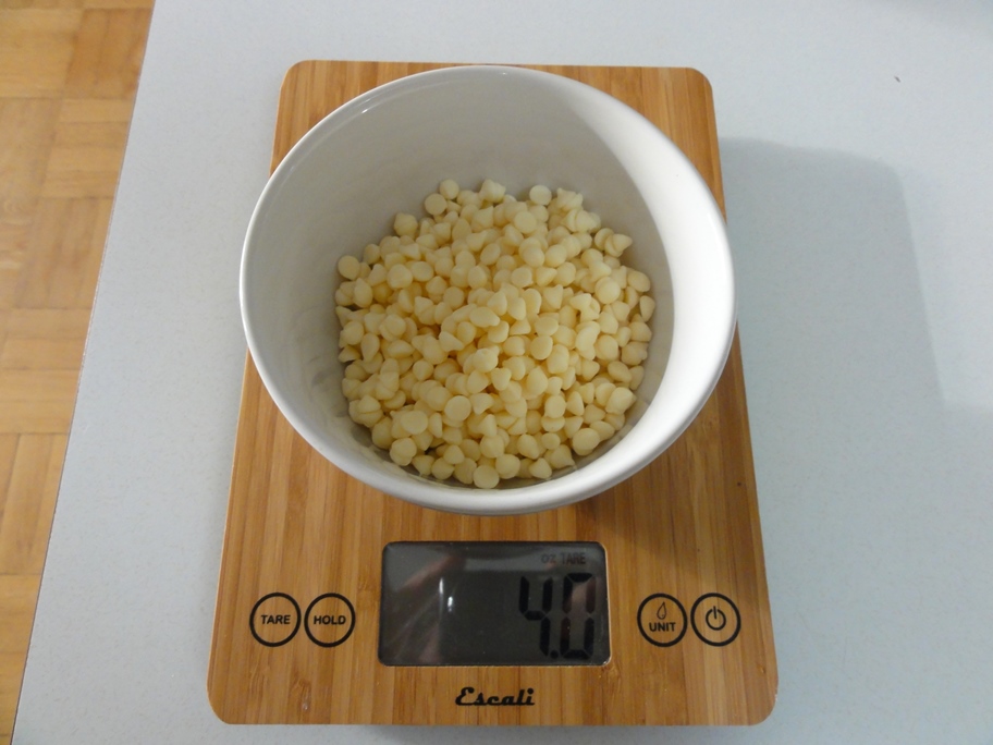- 3 oz (~ 3/4 cup) macadamia nuts, chopped and toasted