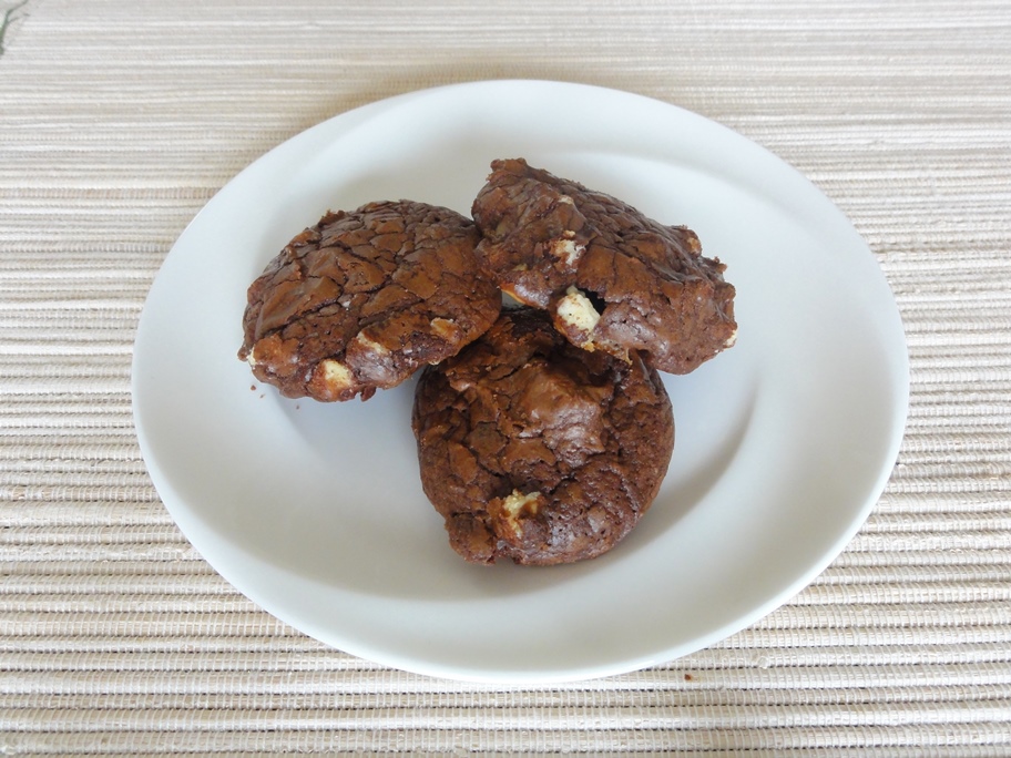 Given how happy I was with the Double Chocolate Walnut Cookies I was not surprised to be delighted with this slight modification to that recipe. The chocolate cookie base is fairly strong so the flavor of the white chocolate doesn’t always come through, usually it’s more of a hint, so it might be worth upping the quantity of chocolate chips depending on your preference for white chocolate.