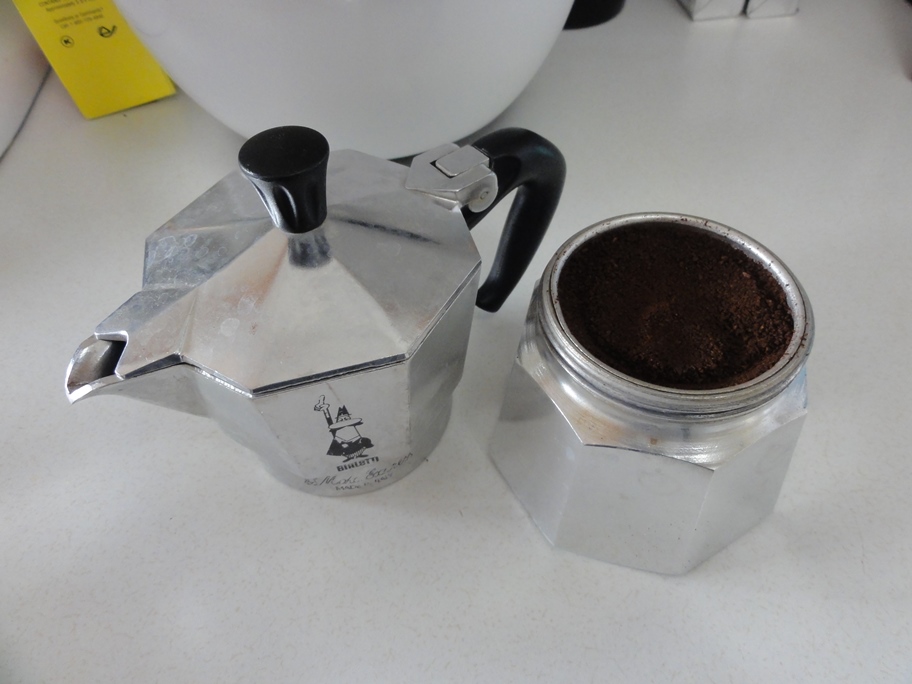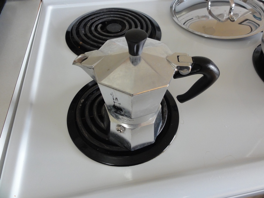 In around 5-10 minutes depending on what your stove is set at and the temperature of the water you started with, the water in the base will boil up through the coffee grounds, up through that central spigot, and pour out into the upper chamber. End result: a strong cup of freshly brewed coffee.