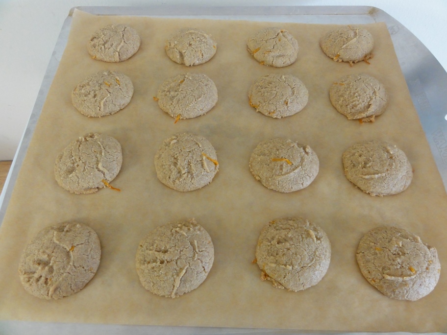 Level-tablespoon sized domes of orange spice goodness worked out great and they do spread out a bit so leave them some room to themselves.