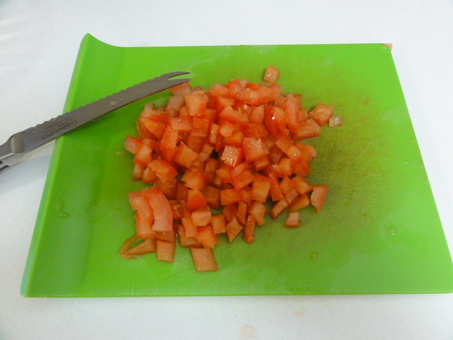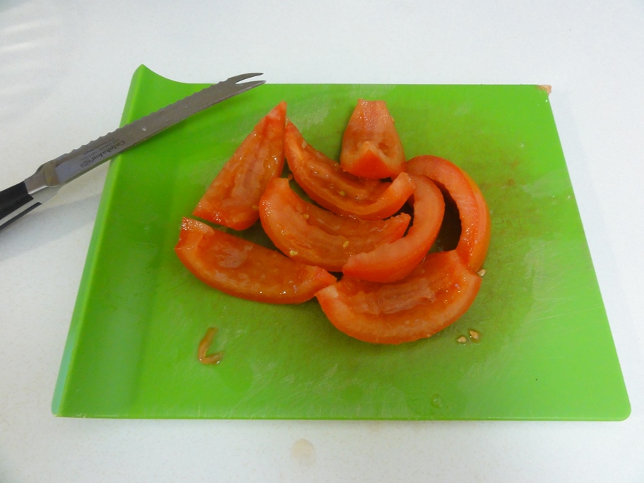 For the tomato, all we’re including in the guacamole is the outer part; the liquid in the middle and the seeds should be removed, as per the following photos. If that waste isn’t to your taste, that’s where making a pot of chili or tortilla soup alongside comes in handy because the insides of a single tomato can easily be tossed in to either without upsetting the recipe.