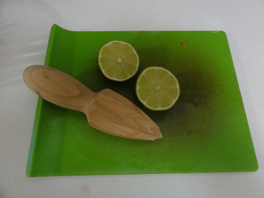 There are many ways to juice a lime, so by all means use whatever tools you’ve got on hand, even if it’s just a matter of jamming a fork in and twisting it around. A few months back I picked up the “citrus reamer” pictured below, which is a dangerous looking little tool but works great on limes, lemons, and oranges without occupying as much space in a kitchen drawer as most juicers.