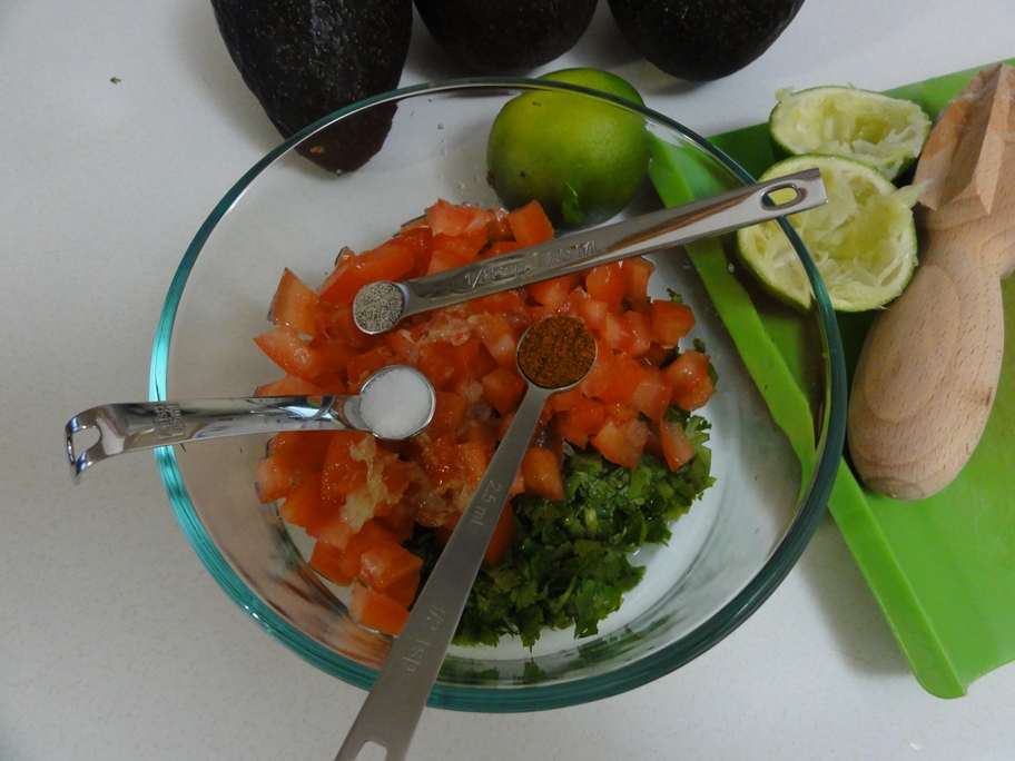 - Mix the cilantro, tomato, juice from one of the limes, and seasonings, together in a bowl.