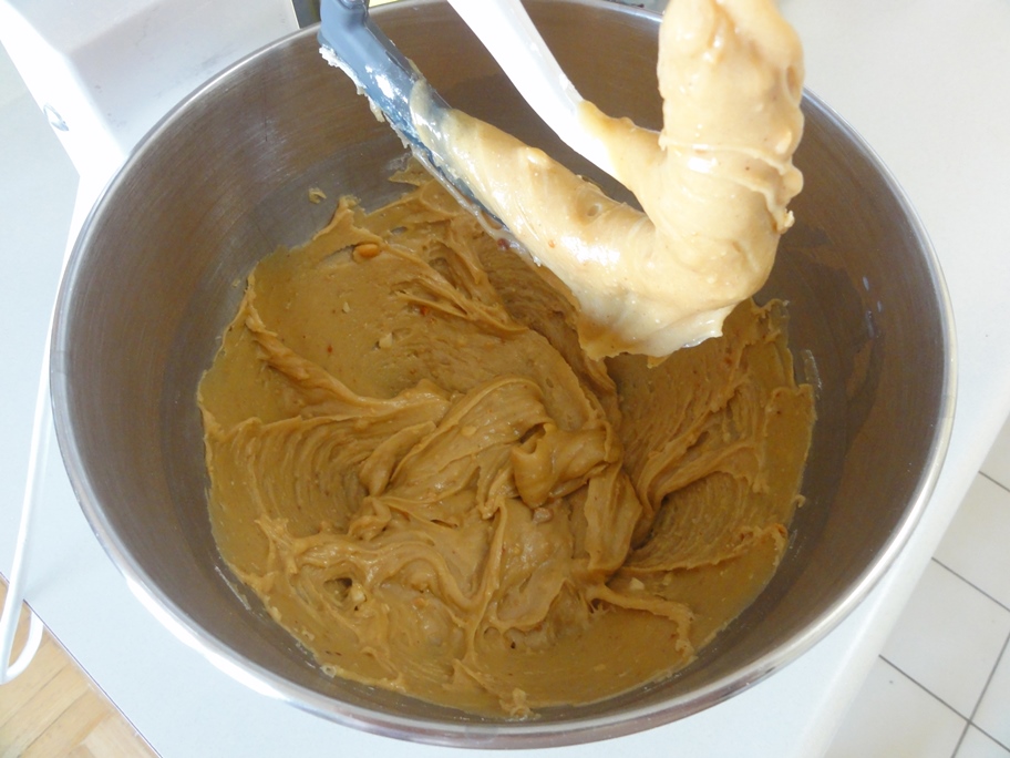Blend it all together until there are no more traces of flour; the consistency will have returned to something fairly close to the original peanut butter.