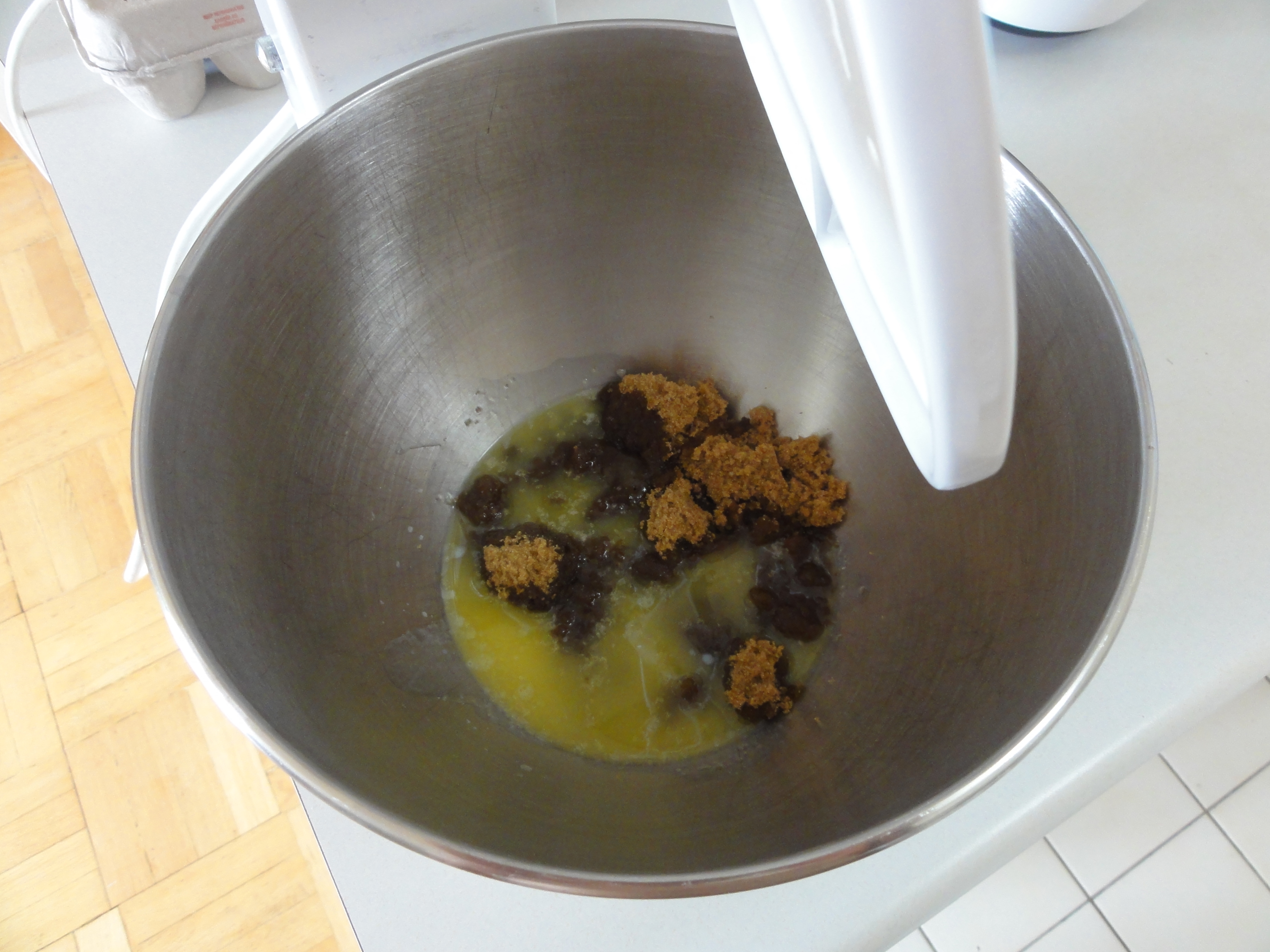 The melted butter and brown sugar will come together into a thick, melted caramel mix.